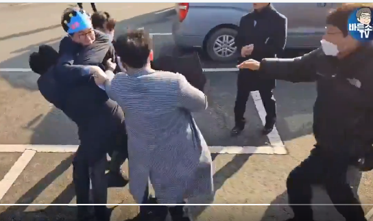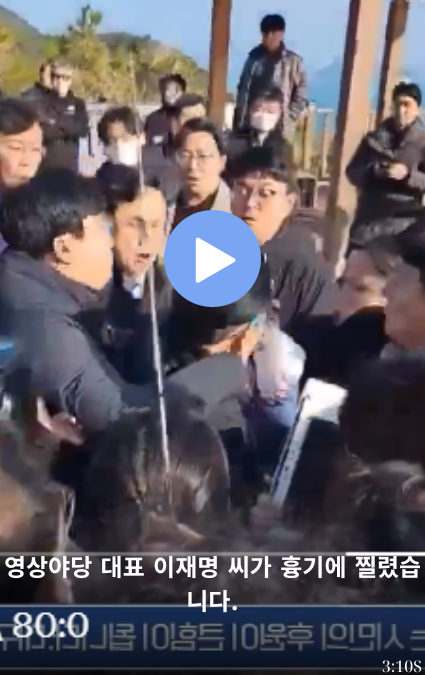 영상야당 대표 이재명 씨가 흉기에 찔렸습니다.