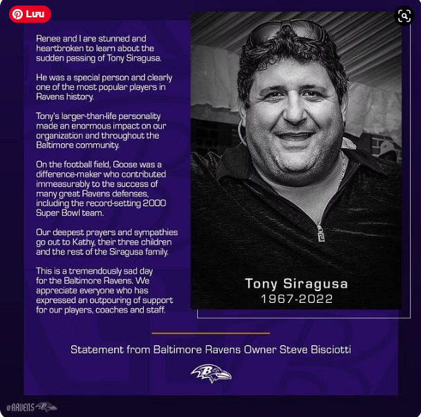 The Baltimore Ravens, where Siragusa had been a part of the legendary defense that won Super Bowl XXXV, issued a statement expressing their shock and sadness at his passing. Ravens owner Steve Bisciotti’s words encapsulated the sentiment felt by many: “Tony’s larger-than-life personality made an enormous impact on our organization and throughout the Baltimore community.”